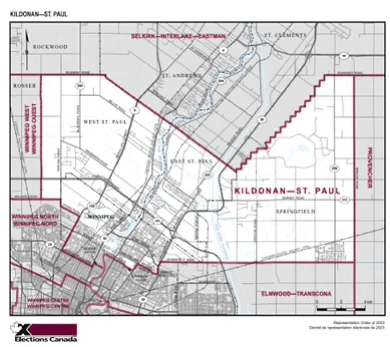 Map of the new Kildonan—St. Paul boundaries, which will be used in this federal election.