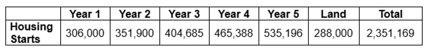 Canada started building 245,000 homes in 2024. A Poilievre government will add 36,000 more each year by axing the GST on new homes under $1.3 million, and another 25,000 by encouraging cities to lower development charges, totalling 306,000 homes in year one.